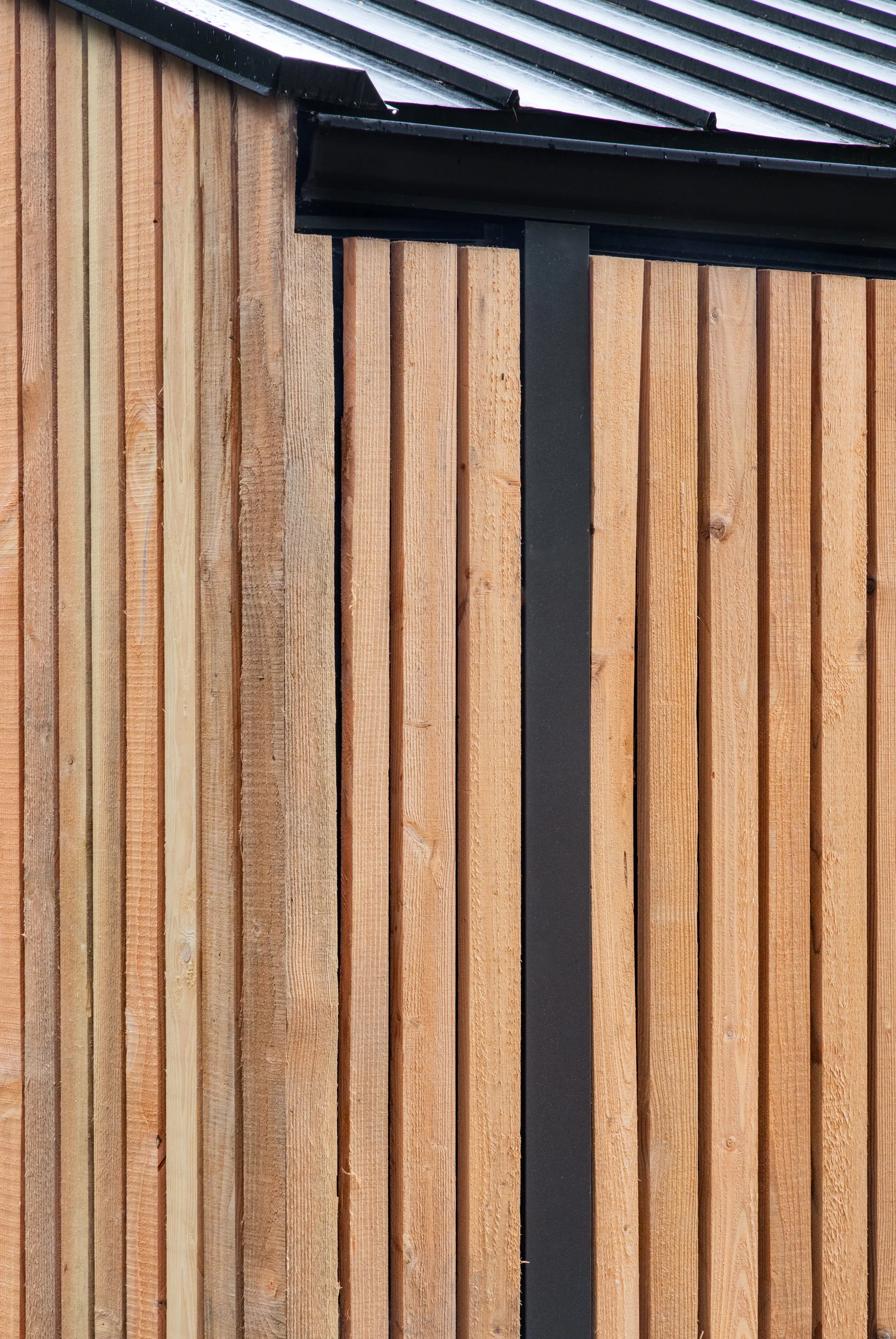 Open-joint siding over a high-performance waterproof membrane. Our siding is rough sawn, here on our property from wind fallen Douglas fir trees, while supplies last. Otherwise, purchased locally.